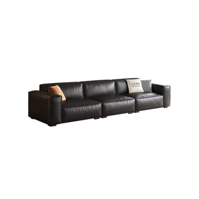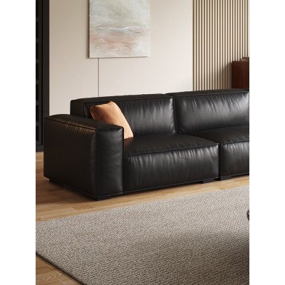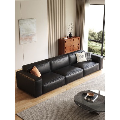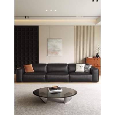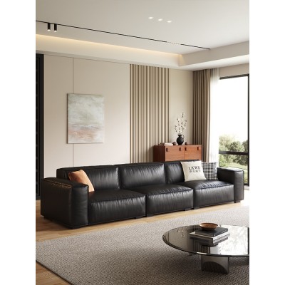 黑色豆腐块真皮沙发头层牛皮意式极简客厅现代简约小户型直排沙发